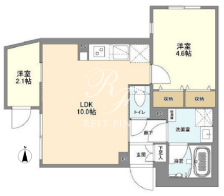 平米数 | 38.54m2 | 部屋詳細 | LDK10帖/洋室4.6帖/洋室2.1帖 |