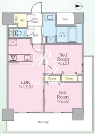 | 平米数 | 55.74m2 | 部屋詳細 | LDK12.3帖/洋室5.7帖/洋室5.6帖 |