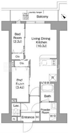 | 平米数 | 39.80m2 | 部屋詳細 | LDK10.3帖/洋室3.4帖/洋室2.3帖 |