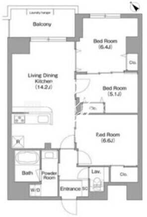 | 平米数 | 71.57m2 | 部屋詳細 | LDK14.2帖/洋室6.6帖/洋室6.4帖/洋室5.1帖 |