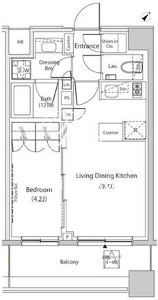 平米数 | 34.68m2 | 部屋詳細 | LDK9.7帖/洋室4.2帖 |