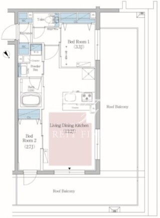 平米数 | 42.22m2 | 部屋詳細 | LDK12帖/洋室3.3帖/洋室2.7帖 |