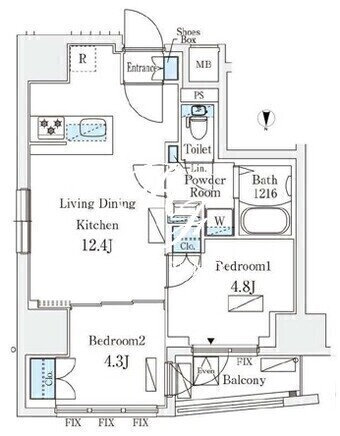 平米数 | 45.27m2 | 部屋詳細 | LDK12.4帖/洋室4.8帖/洋室4.3帖 |