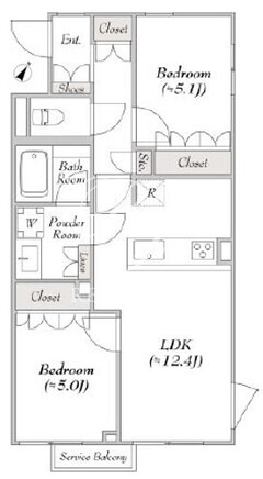 平米数 | 54.63m2 | 部屋詳細 | LDK12.4帖/洋室5.1帖/洋室5帖 |