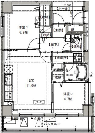 平米数 | 50.67m2 | 部屋詳細 | LDK11帖/洋室6.2帖/洋室4.7帖 |