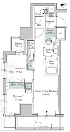 平米数 | 42.90m2 | 部屋詳細 | LDK10.4帖/洋室4.2帖/洋室4帖 |