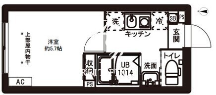 平米数 | 18.05m2 | 部屋詳細 | 洋室5.7帖/K2帖 |