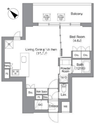所在階/向き | 4階/北東 | 間取り | 1LDK+SIC |