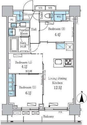 平米数 | 60.48m2 | 部屋詳細 | LDK12.5帖/洋室6.1帖/洋室4.4帖/洋室4.1帖 |