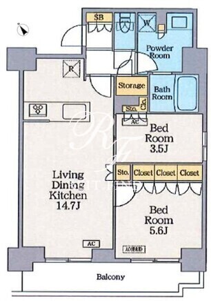 平米数 | 55.41m2 | 部屋詳細 | LDK14.7帖/洋室5.6帖/洋室3.5帖 |
