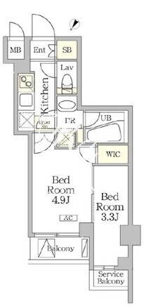 平米数 | 25.15m2 | 部屋詳細 | 洋室4.9帖/洋室3.3帖/K2帖 |