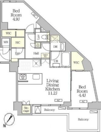 所在階/向き | 5階/北西 | 間取り | 2LDK+WIC+WIC+SIC |