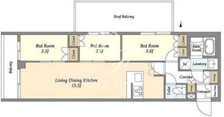 平米数 | 51.66m2 | 部屋詳細 | LDK13.3帖/洋室3.8帖/洋室3.5帖/洋室2.8帖 |
