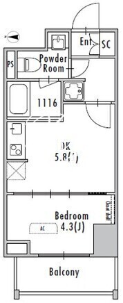 平米数 | 25.26m2 | 部屋詳細 | DK5.8帖/洋室4.3帖 |