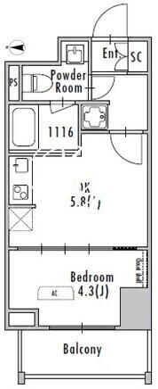 平米数 | 25.26m2 | 部屋詳細 | DK5.8帖/洋室4.3帖 |