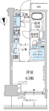 平米数 | 25.74m2 | 部屋詳細 | 洋室6.3帖/K2.6帖 |