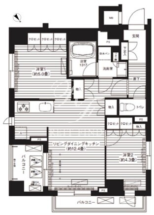 | 平米数 | 52.46m2 | 部屋詳細 | LDK12.4帖/洋室5帖/洋室4.3帖 |