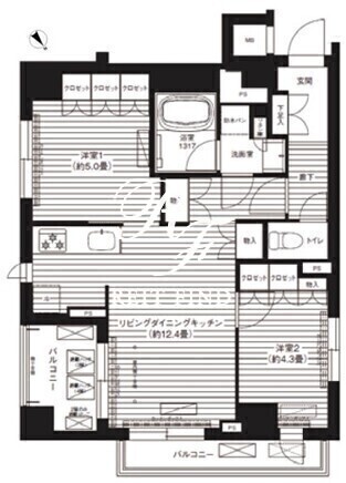 平米数 | 52.46m2 | 部屋詳細 | LDK12.4帖/洋室5帖/洋室4.3帖 |