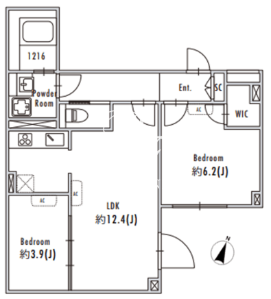 | 平米数 | 52.96m2 | 部屋詳細 | LDK12.4帖/洋室6.2帖/洋室3.9帖 |