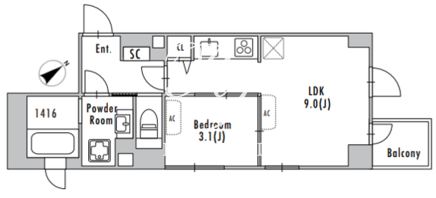 | 所在階/向き | 3階/北東 | 間取り | 1LDK |