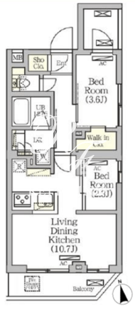 平米数 | 40.50m2 | 部屋詳細 | LDK10.7帖/洋室3.6帖/洋室2.3帖 |