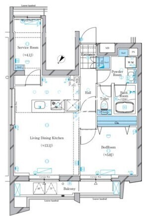 平米数 | 52.55m2 | 部屋詳細 | LDK13.1帖/洋室5.8帖/サービスルーム4.1帖 |