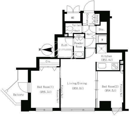 所在階/向き | 11階/西 | 間取り | 2LDK |