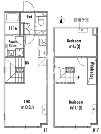 平米数 | 55.94m2 | 部屋詳細 | LDK13帖/洋室11.1帖/洋室4.7帖 |