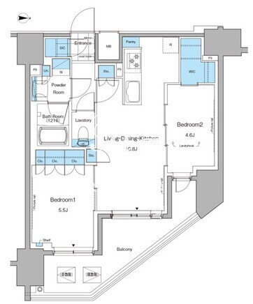 所在階/向き | 12階/東 | 間取り | 2LDK+WIC+SIC |