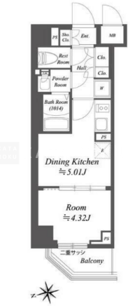 | 所在階/向き | 2階/西 | 間取り | 1DK |