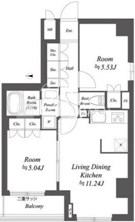 | 平米数 | 50.01m2 | 部屋詳細 | LDK11.24帖/洋室5.53帖/洋室5.04帖 |