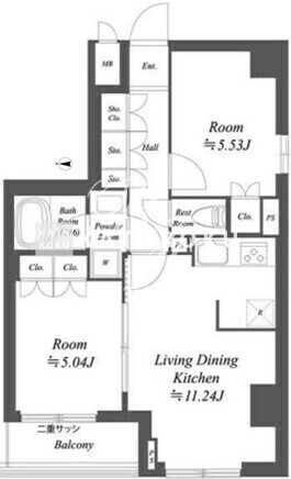 | 平米数 | 50.01m2 | 部屋詳細 | LDK11.24帖/洋室5.53帖/洋室5.04帖 |