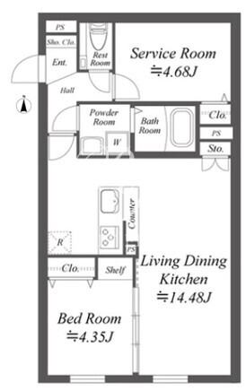 平米数 | 50.73m2 | 部屋詳細 | LDK14.48帖/洋室4.35帖/サービスルーム4.68帖 |
