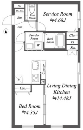 平米数 | 50.44m2 | 部屋詳細 | LDK14.48帖/洋室4.35帖/サービスルーム4.68帖 |