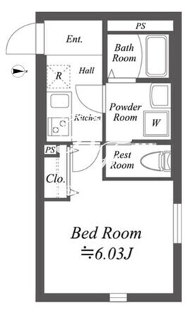 平米数 | 22.27m2 | 部屋詳細 | 洋室6.03帖/K2帖 |
