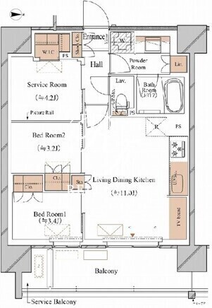 平米数 | 52.26m2 | 部屋詳細 | LDK11帖/洋室3.4帖/洋室3.2帖/サービスルーム4.2帖 |