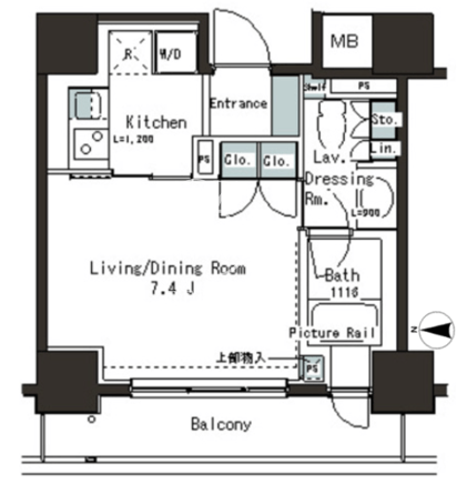 平米数 | 26.91m2 | 部屋詳細 | 洋室7.4帖/K2帖 |