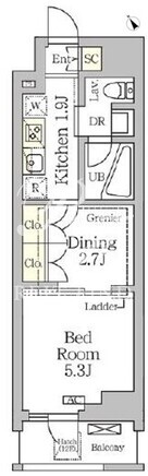 所在階/向き | 12階/南西 | 間取り | 1DK |