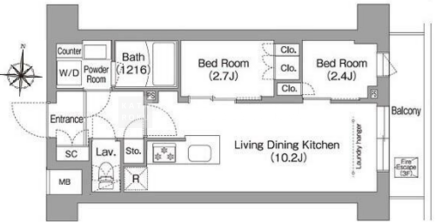 平米数 | 37.12m2 | 部屋詳細 | LDK10.2帖/サービスルーム2.7帖/洋室2.4帖 |