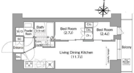 | 平米数 | 37.84m2 | 部屋詳細 | LDK11.7帖/洋室2.7帖/洋室2.4帖 |