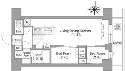 | 平米数 | 37.84m2 | 部屋詳細 | LDK11.5帖/洋室2.7帖/洋室2.4帖 |