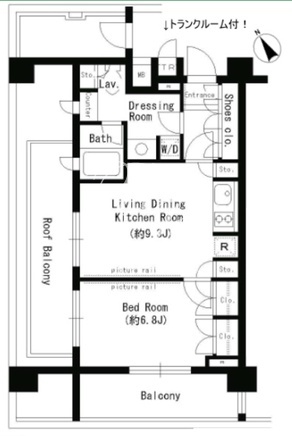 平米数 | 43.26m2 | 部屋詳細 | LDK9.3帖/洋室6.8帖 |