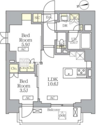 | 平米数 | 46.15m2 | 部屋詳細 | LDK10.6帖/洋室5.9帖/洋室3.5帖 |