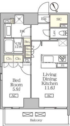 平米数 | 46.04m2 | 部屋詳細 | LDK11.6帖/洋室5.9帖 |