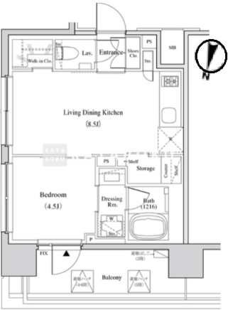 | 所在階/向き | 5階/北 | 間取り | 1LDK+WIC |