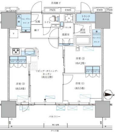 | 平米数 | 60.57m2 | 部屋詳細 | LDK12.2帖/洋室5.5帖/洋室4.2帖/洋室3.8帖 |