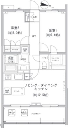 | 平米数 | 55.66m2 | 部屋詳細 | LDK12.5帖/洋室6.4帖/洋室5帖 |