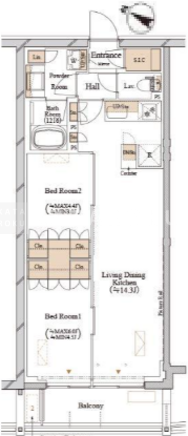 | 平米数 | 52.75m2 | 部屋詳細 | LDK14.3帖/洋室6帖/洋室4.4帖 |