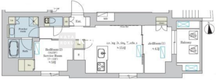 | 平米数 | 50.60m2 | 部屋詳細 | LDK13.4帖/洋室4.3帖/サービスルーム3.8帖 |
