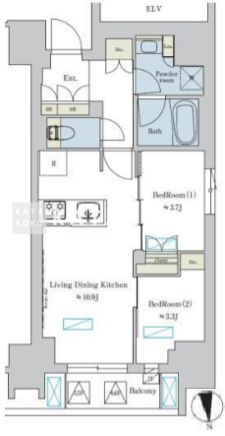 | 平米数 | 45.79m2 | 部屋詳細 | LDK10.9帖/洋室3.7帖/洋室3.3帖 |